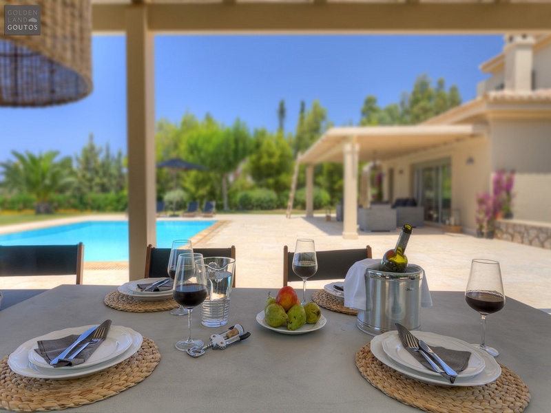 The villa of the description stands out for its beauty and is built in Ververonda, the most up-and-coming residential area of Porto Heli and close to the Amanzoe resort. It is located in a small settlement with luxurious residences, only 60m away from the “Kyparissia” beach and 2km away from the harbor of Porto Heli. Among the advantages of this villa is the privacy together with the safety, since the neighborhood is inhabited by many noble families.