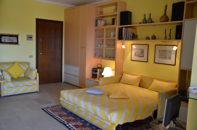 Nice studio apartment on the third floor of a residence with big park fully well planted and concierge, situated in Lesa, Villa Lesa zone. The studio has a big living area facing a terrace with incredible view over the Lake Maggiore, kitchenette and bathroom. The property it is completed by a basement and covered parking place.