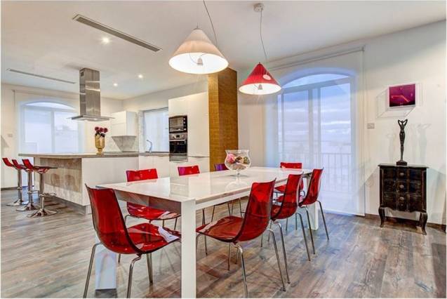 For sale duplex apartment in Swieqi, located in the northern part of the island of Malta. Located in close proximity to the tourist center - St Julian's. Corner, a modern duplex located on 350 square meters, enjoys a very high demand in the residential area. The beautifully decorated living space and bedrooms spread over an area of 180 square meters and consists of a spacious, open-plan living / dining and high-end cuisine. The property also has a master bedroom, which has a dressing room and a bathroom and two double bedrooms and a main bathroom. On the second floor, there is a chill-out area, leading onto a sunny terrace. The property is sold fully furnished and has air conditioning, surround sound system, two LCD TVs and more. Garage for two cars is also included.