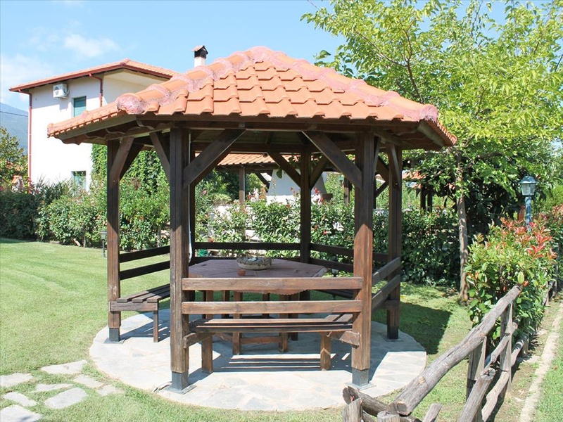 На территории оборудовано парковочное место, зона барбекю, ухоженный сад с газоном, автоматизированным поливом и красивой беседкой.