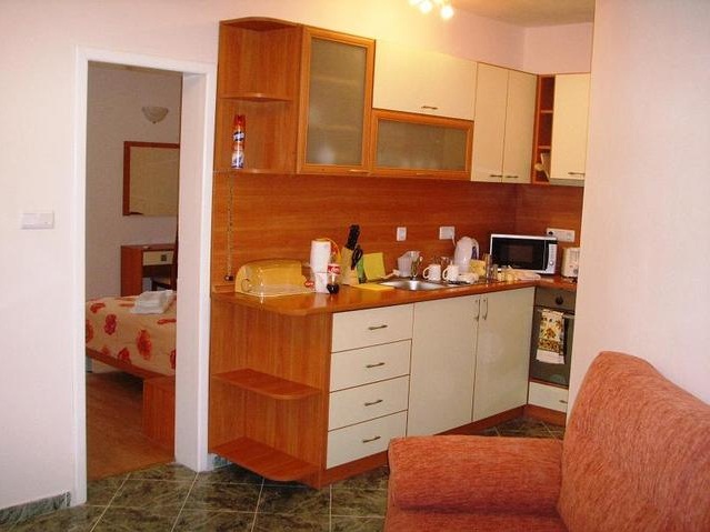 On the first floor of the town house there are an entrance hall, a dining room, a living room with kitchen in an open space, a bedroom, a bathroom with a shower. On the second floor there are two bedrooms, a bathroom and a spacious balcony. Each room has air conditioning installed. Pool view from all rooms. Townhouse is offered for sale fully furnished.