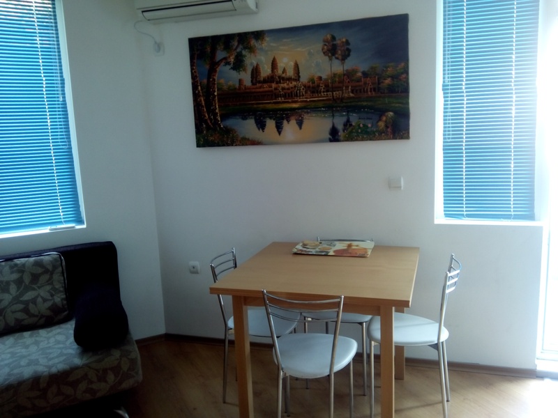 Два двухкомнатных апартамента.Аппартаменты находятся в комплексе Лагуна3. Комплекс /если вы имеете представление о Солн.Береге/ находится позади Роял Сан,слева от супермаркета Младость и Перла в трех минутах ходьбы.До центра 10 минут ходьбыДо моря минут десять. Аппартаменты на втором этаже,через стену. .Район тихий и недалеко от центра.Самое главное рядом с Младостью и Перлой,что немаловажно для покупки недорогих продуктов.В апартаменте две комнаты,в гостиной встроенная кухня с электроплитой,микроволновка,чайник,тостер,холодильник,стиральная машинка и всё остальное для питания.Кондиционер,телевизор.Санузел с душевой кабиной,балкон.В спальне двуспальная кровать. Диван раскладывается больше чем двуспалка,есть надувной матрас-кровать.Интернет/ вай фай-платно/ ,парковка у комплекса для постояльцев бесплатная. Поблизости находится остановка автобуса, откуда можно доехать за 10 минут до исторического центра Несебра. Вода и электроэнергия оплачивается отдельно по счетчику. Рядом много недорогих кафе с развлекательными программами.Цена май-июнь 22 евро, июль 25 евро, август 28 евро, сентябрь 20 евро.Минимальный срок аренды 15 суток. На длительные сроки /больше месяца/ скидки.