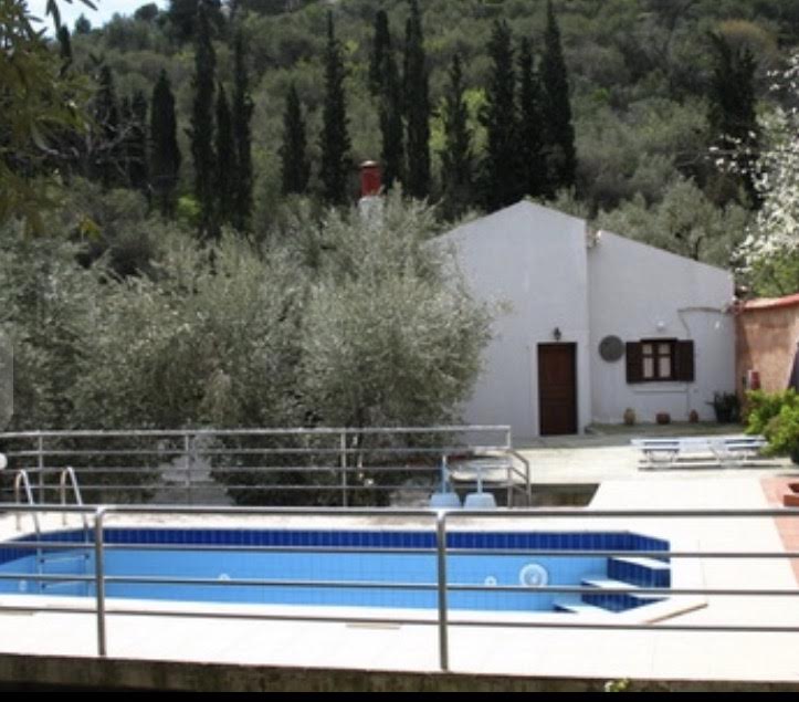 This property is situated in a beautiful secluded valley but still close to Skopelos Town and has two houses included in it. The first is a traditional kalivi of small farmhouse with a Skopleiti fireplace and open beamed ceiling and the second is a modern house with a swimming pool but also built in the traditional way. There is 4 stremma (1 acre or .4 hectare) of land around the houses which is populated with many varieties of trees (including many fruit trees) and there is also room to build on to the house with the base for another room already in place. The views back towards the town and the sea are lovely and the whole property is a gem which is priced to sell and doubtless will!