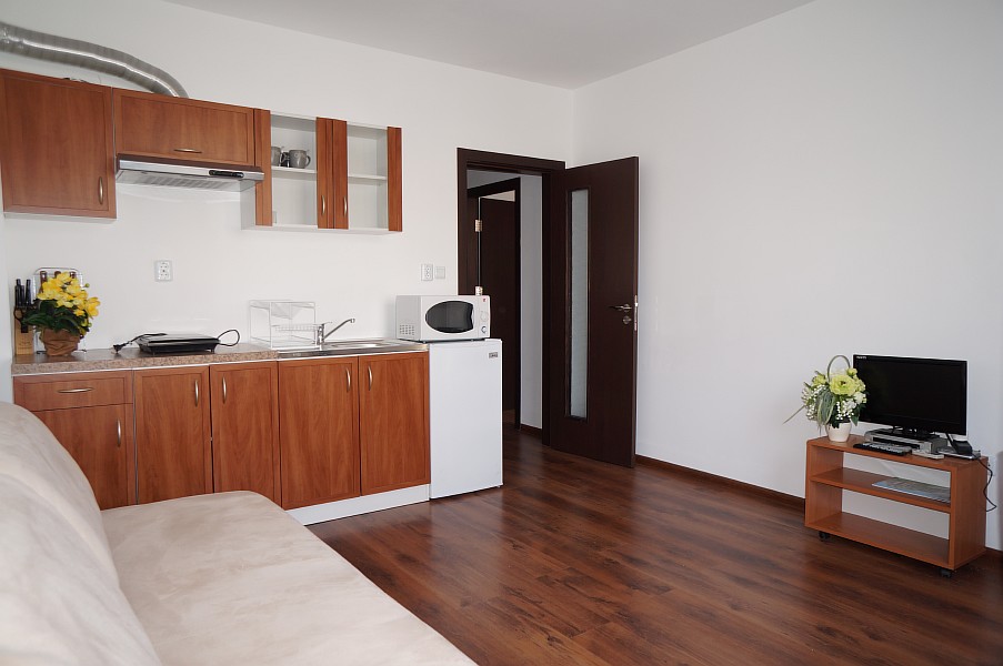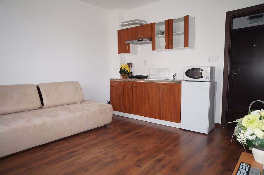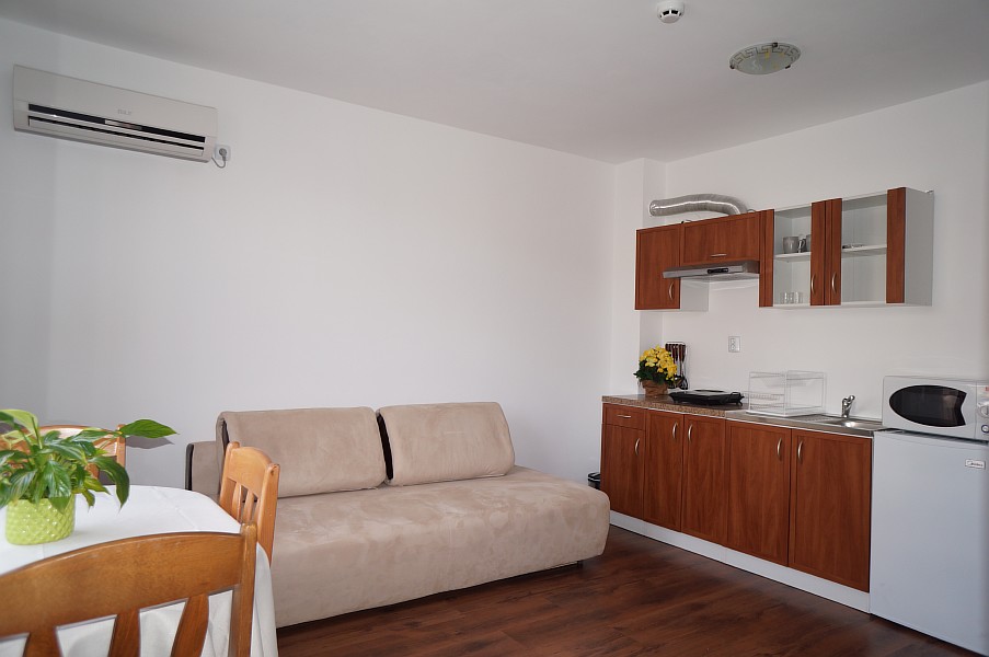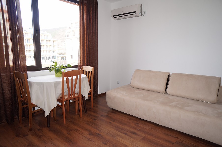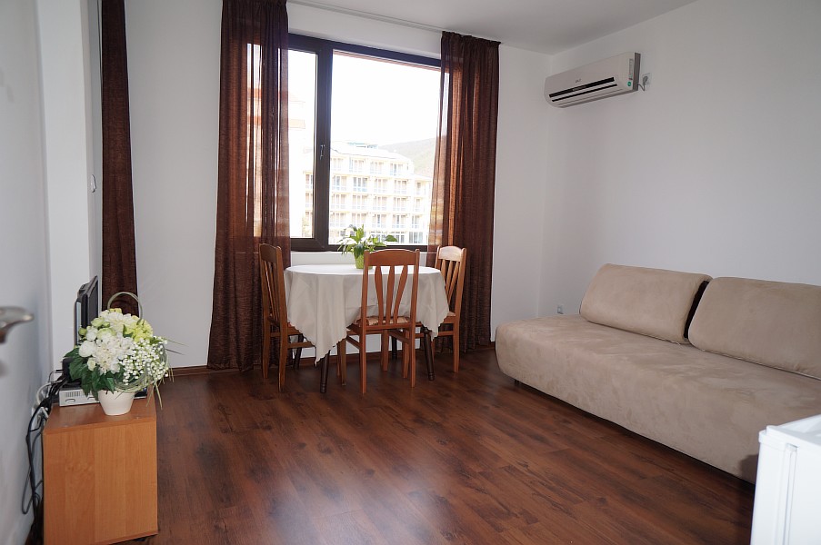 Zu verkaufen ist eine gemütliche 2-Zimmer-Wohnung im 3. Wohnstock im Komplex Raduga in Sveti Vlas. Sie besteht aus Wohnzimmer mit kleiner Küche, Schlafzimmer, Badezimmer plus Toilette und Terrasse. Die Wohnung ist voll möbliert und mit Haushaltsgeräten, Klimaanlage, Geschirr und Besteck ausgestattet. Sie ist sowohl für den Urlaub als auch für ganzjährige Bewohnung passend. Sie ist auch eine ausgezeichnete Geldanlagemöglichkeit!