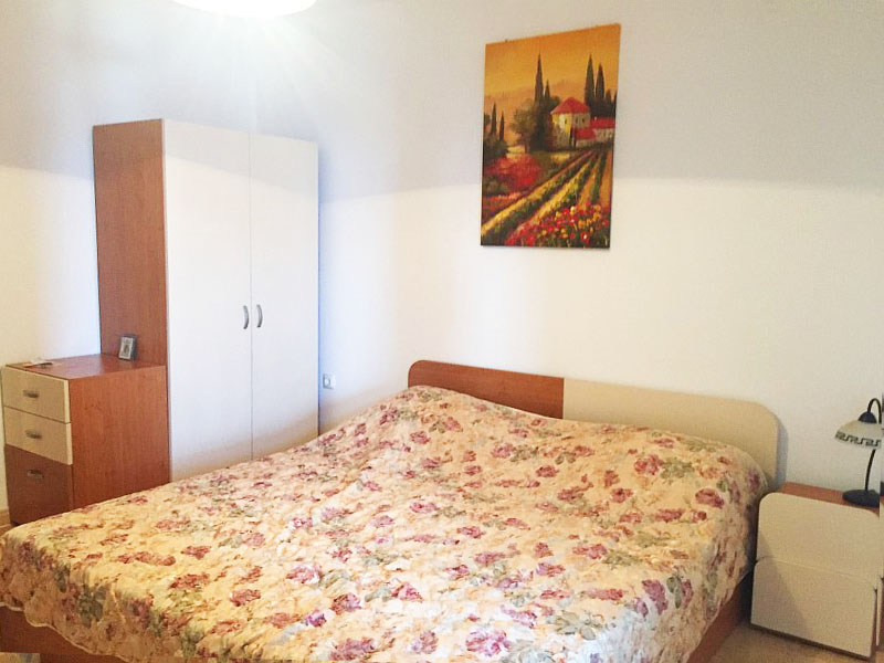 Sie verfügt über 2 Zimmer: ein Wohnzimmer mit Küche und ein Schlafzimmer. Im Wohnzimmer gibt es Schlafsofa, Kaffeetisch, TV-Schrank mit TV-Gerät, Esstisch und Küchenzeile mit Kochplatten, Backofen, Dunstabzugshaube, Kühlschrank, Waschmaschine. Im Schlafzimmer gibt es Doppelbett, großen Kleiderschrank und Kommode. Die Wohnung verfügt über eine Terrasse mit fabelhaftem Ausblick auf das Meer.