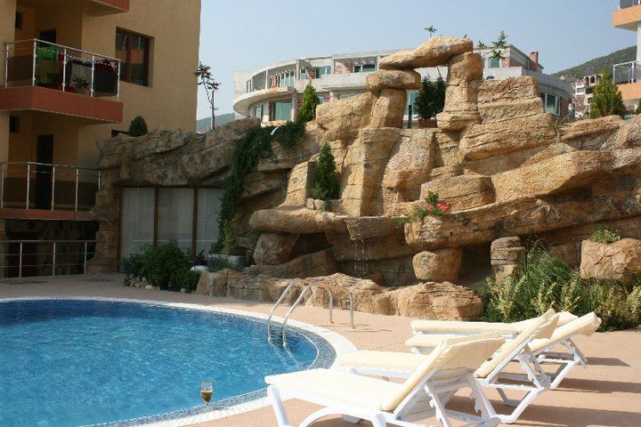 Der Komplex verfügt über eine Grünfläche, Innenhof, Innen- und Außenswimmingpool, Wintergarten, Sauna, Restaurant, Fitness.