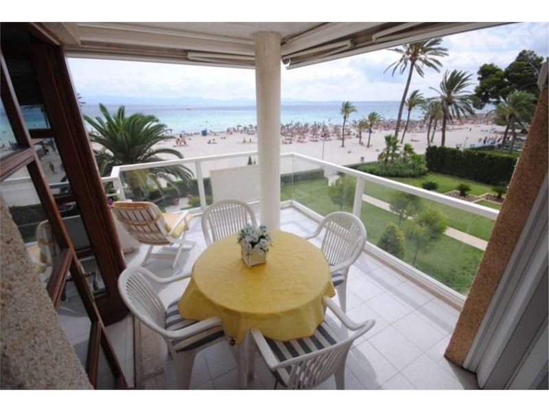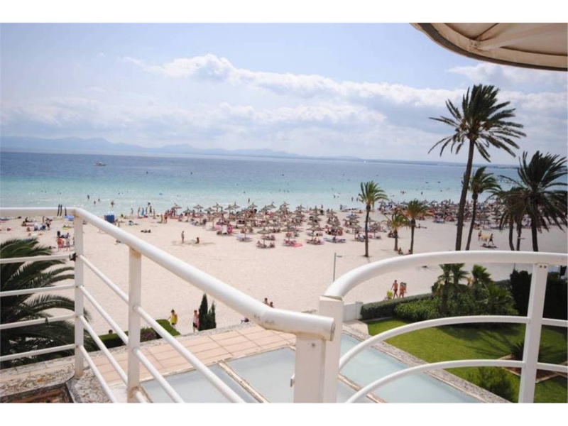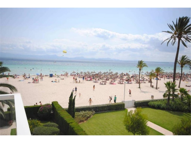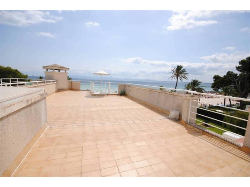 Bright penthouse in first line on the first line at the sandy beach of Alcudia. The apartmant has aprox. 110 m2 plus a roof terrace of aprox. 95 m2. It has 3 bedrooms (2 double, one single), 2 bathrooms, kitchen, laundry space, living dining room, balcony and sun-roof terrace. It also offers a parking in the subterraneous community garage. It is a property in a priviliged area near the port of Alcudia.