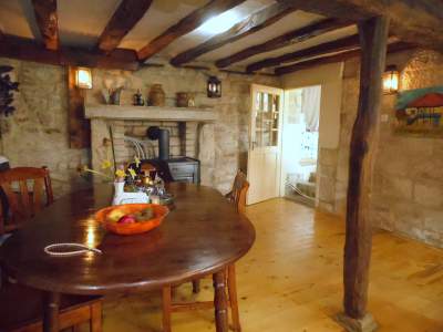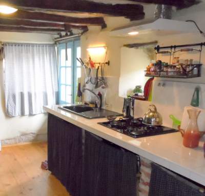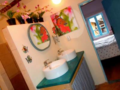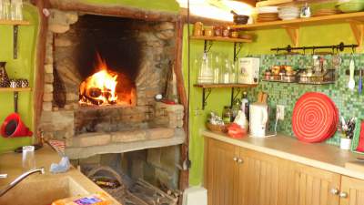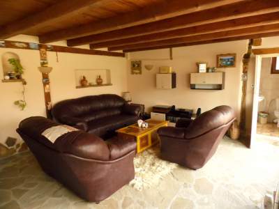 • The main building consists of a rustic basement with kitchen, dining and sitting area, fireplace and radiators. Upper floor: a covered terrace, a small entrance hall, three two-person bedrooms. A bathroom with toilet, shower and double washbasin. Each room is equipped with radiator central heating and double glazing. The attic is completely isolated.