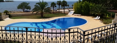 Luxury villa by the sea residential area of 1000 m2. It consists of two parts. Part of the house with 4 apartments, fully furnished with a beautiful view of the sea and the main part of the house which consists of a large living room, kitchen, dining room, bedroom with bathroom and internal staircase leading to the first floor with a large bedroom with a fireplace and a large bathroom . Both parts of the house are connected with the lobby. Garage with three parking spaces. Beautifully landscaped courtyard of 3600 m2 with swimming pool, barbecue and gardens. The house is luxuriously furnished. Unique on the Istrian peninsula.