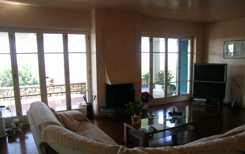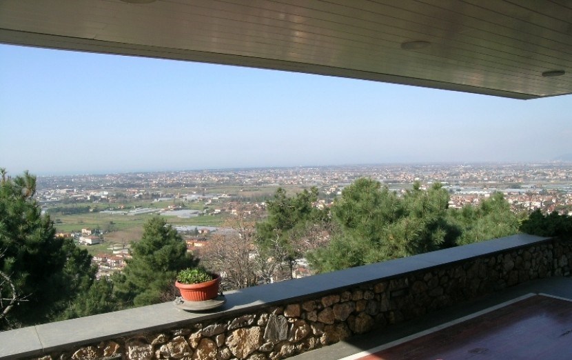 For sale a luxury villa with a beautiful park in Lucca, a city in the Italian region of Tuscany, on the Serchio river. The administrative center of the homonymous province. Modern villa situated in the hills outside of Camaiore with magnificent views of the Versilia coast. This exclusive modern villa, built in 1997, is located in one of the most beautiful places on the hill above Camaiore and was built using the highest quality materials throughout. The villa is situated on two levels, with a basement and is as follows: Ground floor: large covered terrace leading to the house with a breathtaking view of the coast of Versilia at 180 °, open plan living room with fireplace and access to the dining room, kitchenette, 1 bedroom a double bedroom with bathroom, laundry room, guest WC, utility room. First floor: covered terrace with access to the living room with dining area, fully equipped kitchen, 2 bedrooms with bathrooms, pantry. An internal staircase leads to a terrace that can be covered and converted into an extra room. Features: The basement has a large garage, which can also be accessed from the inside which can provide enough space for a large cantina. 1 hectare (100 cells) of land around the property consists of terraced olive groves and a large garden with fruit trees and pine trees. Plenty of room for a pool. The total area of the villa is 320 square meters, with 15 bedrooms, 3 bathrooms, 3 bedrooms.