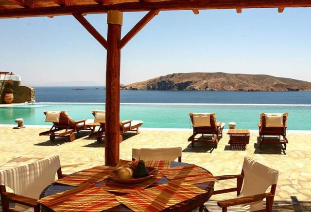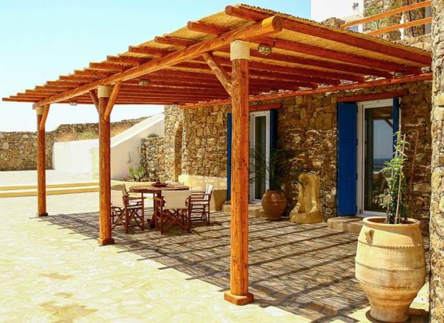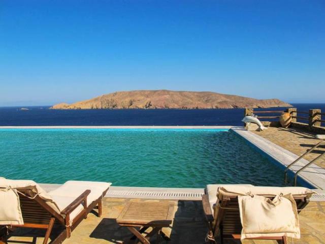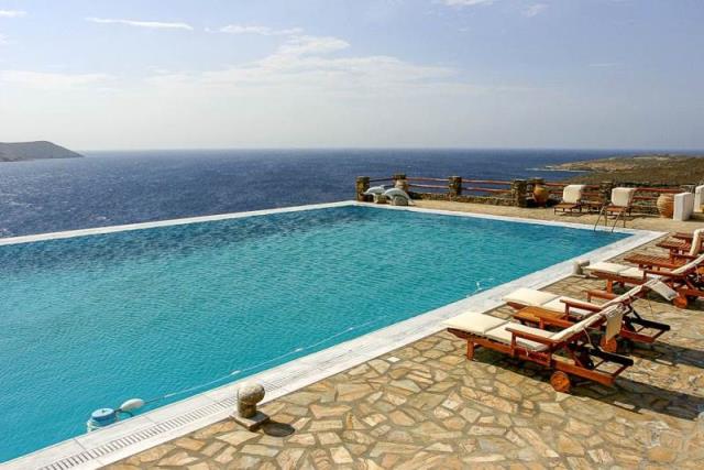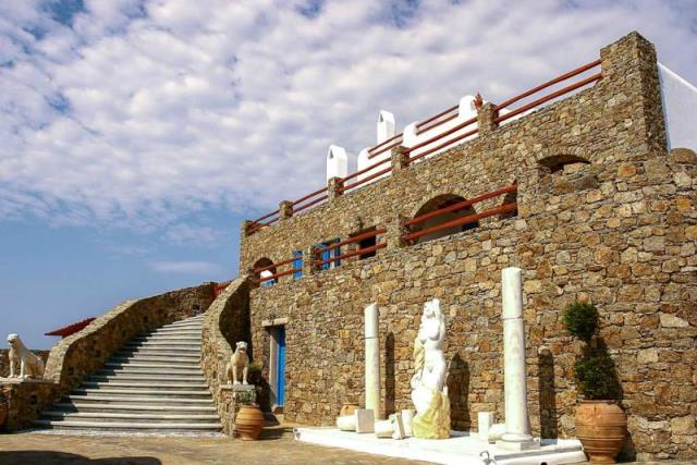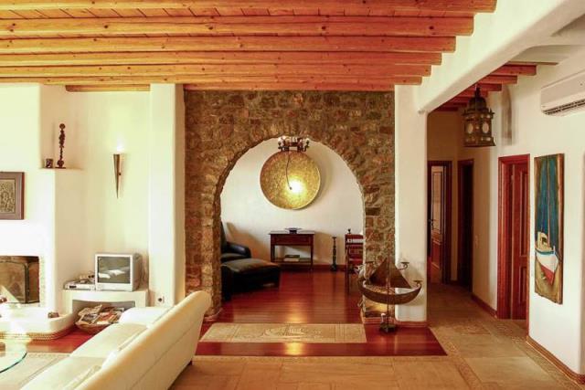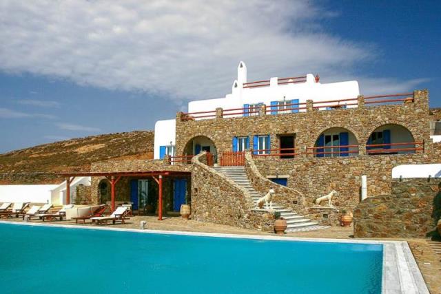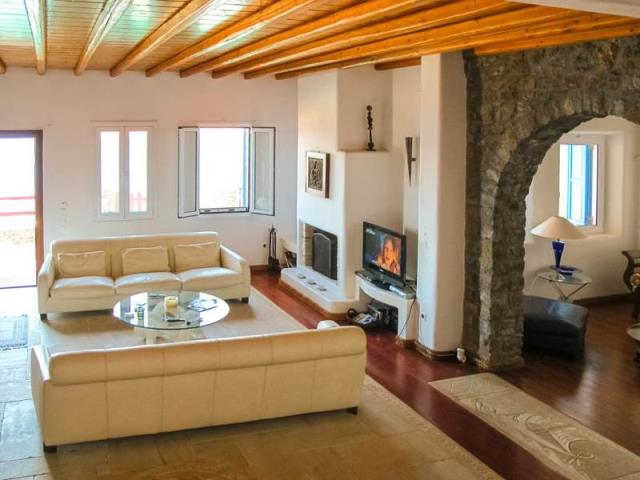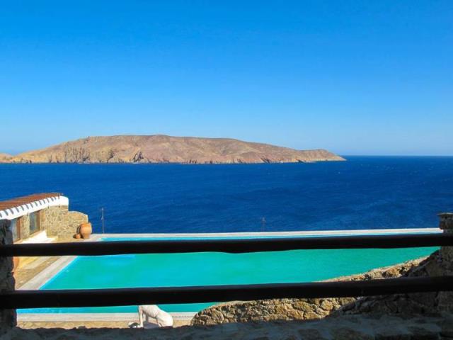 For sale luxury villa on the island of Mykonos Greek island, one of the islands of the Cyclades, is located in the central part of the Aegean Sea, the coastline of which reaches 89 kilometers. Closest to him of the island - Andros, Tinos and Delos. The villa is built on private land 150 meters from the secluded, almost private beach, this luxury villa offers a host of unique features. There is a BBQ by the pool where you can enjoy a wonderful view of the sea. The house is built to the highest standards, on three levels, connected by elevator and stairs. Marble and wood, have been elegantly combined in the finishing of floors. The main house has 4 master bedrooms with bathrooms, kitchen, large dining room, which seats 12 guests and 2. There are 2 guest houses, 3 bedrooms and a second kitchen with direct access to the pool. At each level, you will find a veranda and outdoor seating with great views of the sea. There are 2 storage rooms, covered parking for 2 cars and plenty of open space for parking; there is enough space on the site for even a helicopter. The total area of the villa is 590 sqm, the plot is 4310 sq.m .. In a radius of 20 minutes you will find the organized beaches of Kalafatis and Leah, as well as Ano Mera: the second largest village of the island offers a good selection of restaurants, bars and shops. Distance to airport 17,20 km. The house was built in 2005.