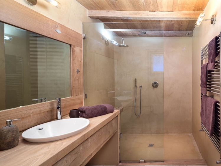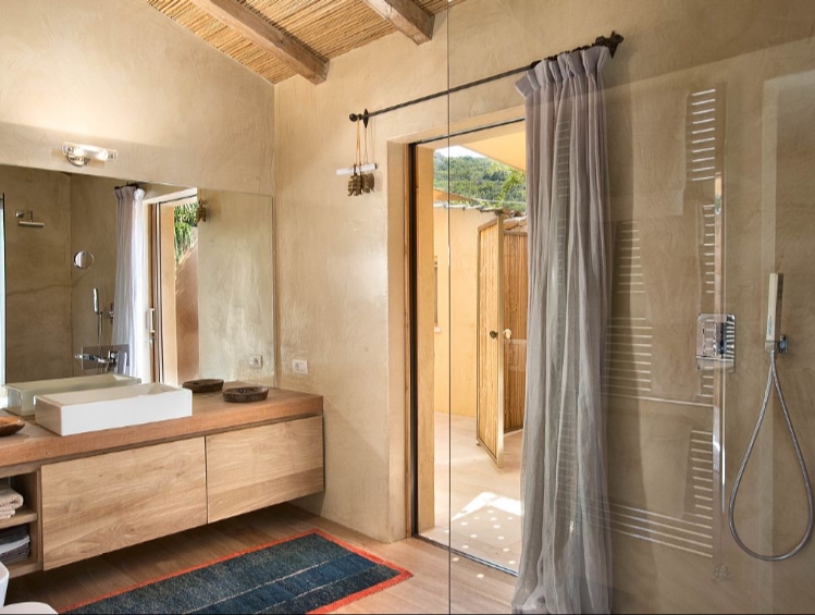 The main building consists of a large living room, a large well-equipped kitchen, bedroom with bathroom, double bedroom with en suite bathroom, 2 twin bedrooms, each with a bathroom. On the ground floor, double bedroom with bathroom for staff.