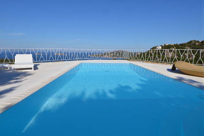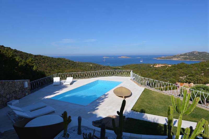 For sale charming villa in Porto Cervo, a luxurious resort in the north of Sardinia, created on the initiative of the Aga Khan IV in the 1960s. by architect Luigi Vietto as the center of the Emerald Coast. This villa is situated in a dominant position on a green hill Pantogia beautiful views of the sea. Its minimalist character and its dominant white color always gives a sense of continuity and elegance in a villa. The villa has a cozy living room with a terrace overlooking the beautiful pool area, kitchen with patio, master bedroom with bathroom on the first floor, ground floor has two double bedrooms with a bathroom, an extra single bed, covered parking for 2 cars - Wi-Fi . The villa is located about 1.5 from the beach of Pevero and Porto Paglia and in close proximity to all the services provided by the nearby major centers such as Porto Cervo.