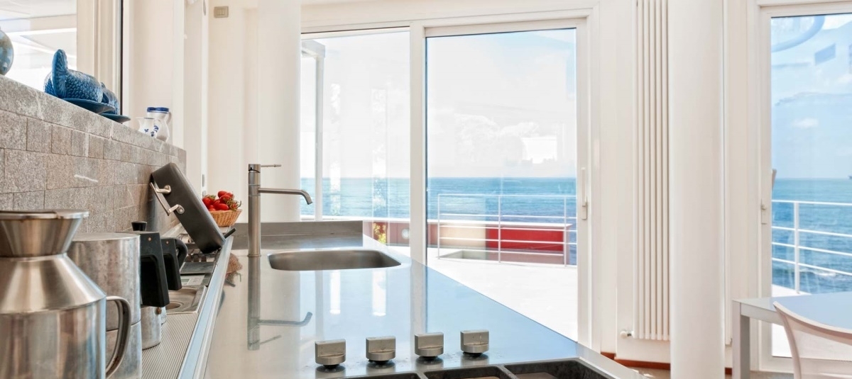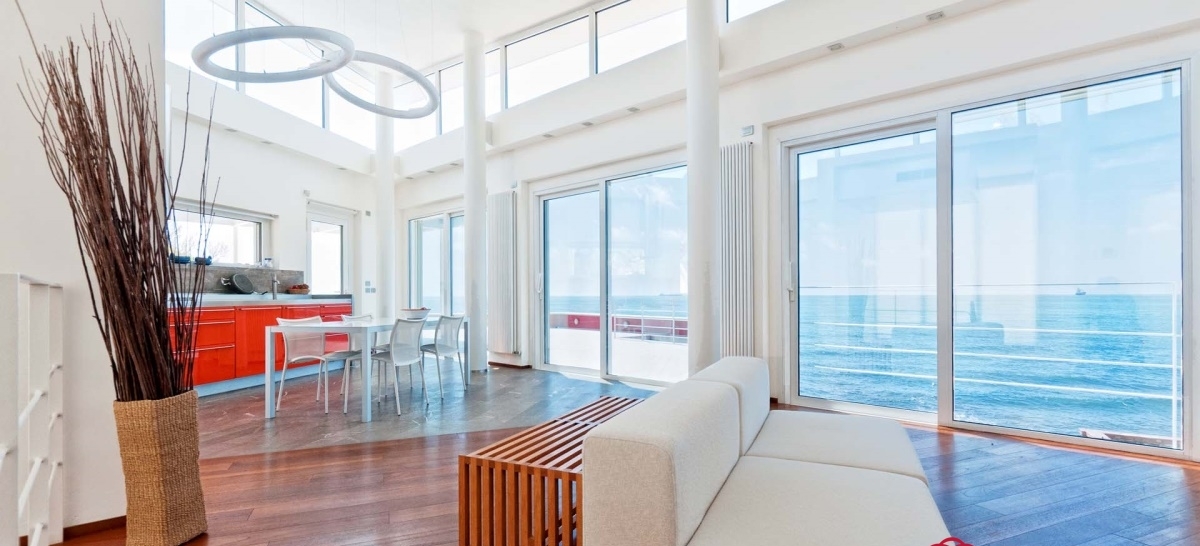 For sale unique villa overlooking the sea in Livorno, the biggest port of Tuscany, the capital of the eponymous province. Located on the east coast of the Ligurian Sea in a natural cove, a few miles south of the mouth of the river Arno, surrounded by low hills Leghorn. Beautiful luxury villa overlooking the sea, in a unique position, in a modern architectural style. The villa is on two floors for a total of 250 square meters, it consists of 2 bedrooms, kitchen, 3 bathrooms, 2 living rooms, 1 studio and 3 outdoor terraces. The villa is surrounded by a 4,500 sq.m. magnificent park with the Mediterranean vegetation. The villa has been finished with high quality materials, large windows with sea views, terraces covering a total of 500 square meters, guaranteeing maximum comfort to those looking for an exclusive lifestyle.