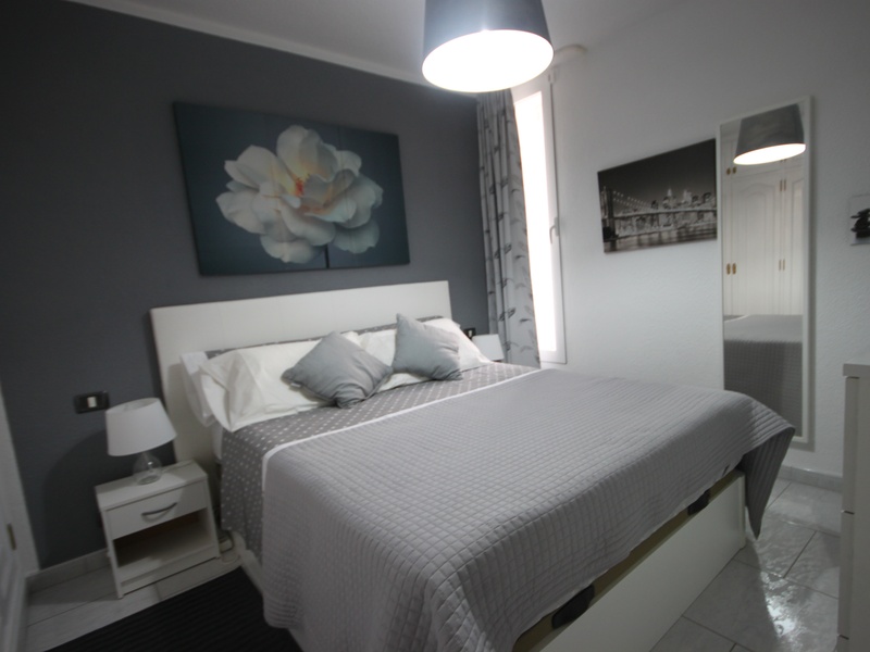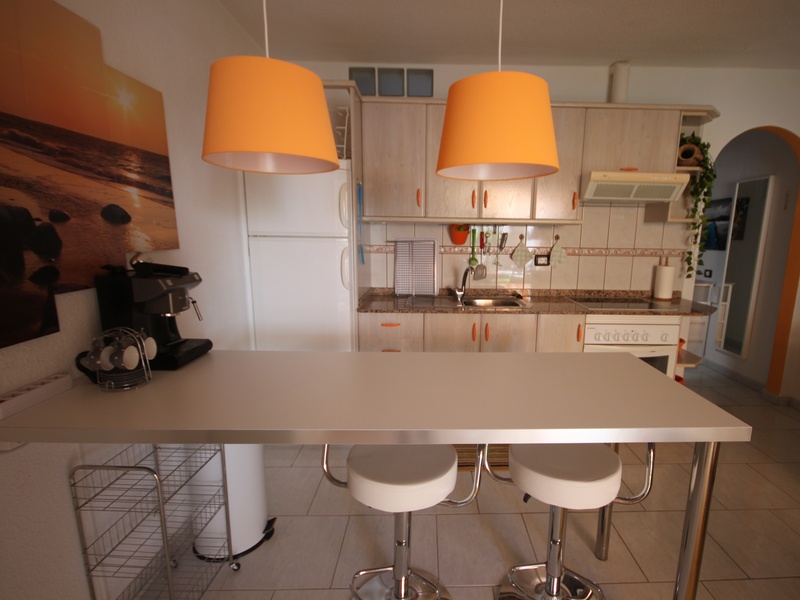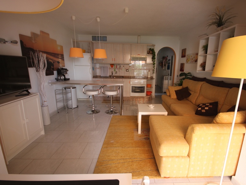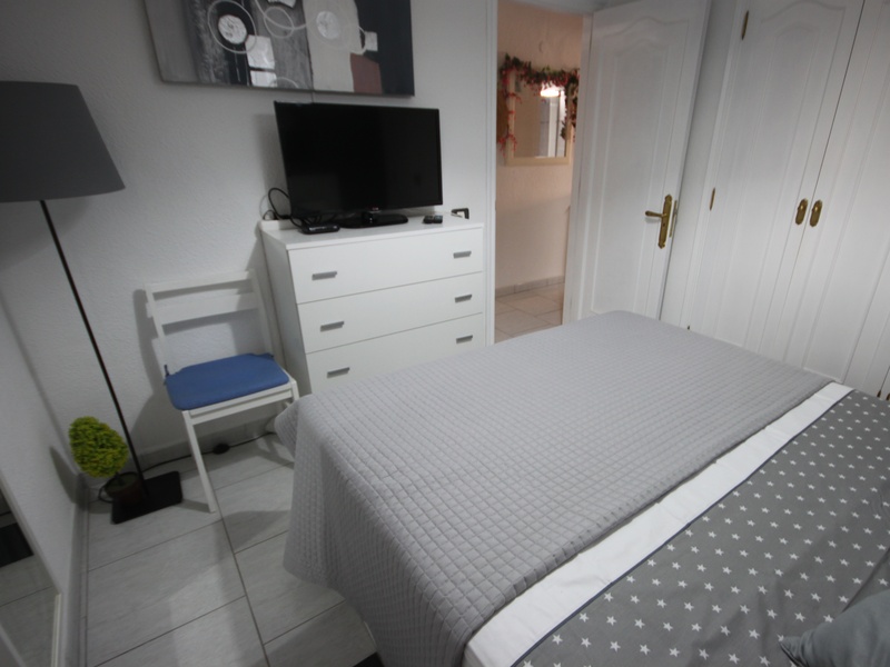 Modern and cozy apartment in Miraverde, in Costa Adeje, in the South Tenerife. The apartment has a bedroom with double bed, fitted wardrobes and tv. The bathroom is with shower and also has washing machine. In the lounge there is a sofa bed for 2 people and tv with satellite channels. The American style kitchen is fully equipped with appliances and utensils needed daily. From the living room there is access to a beautiful and sunny garden with awning, table and sun loungers. The complex has communal pool and free outdoor parking area. Price 500€ for 1 week.