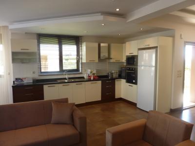 1st floor - salon with access to the terrace to the pool, American kitchen with built-in wardrobes, home appliances of the firm 'Hoover' (hob, extractor hood, microwave oven), bathroom.
