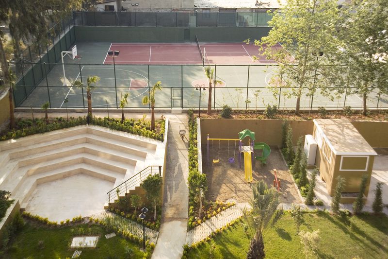 The unique residential complex "Selcuklu Konaklari" is located in the very center of the city of Alanya, right by the sea. The last complex with a large garden area, with a closed winter pool, underground covered garage, central heating system, etc.