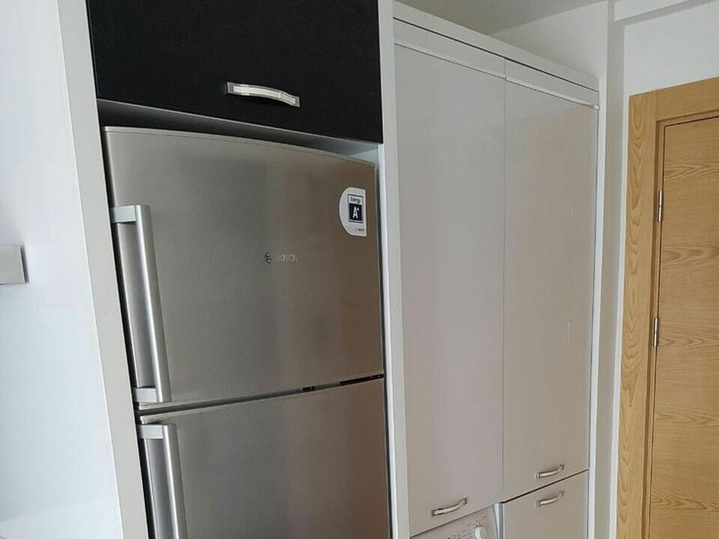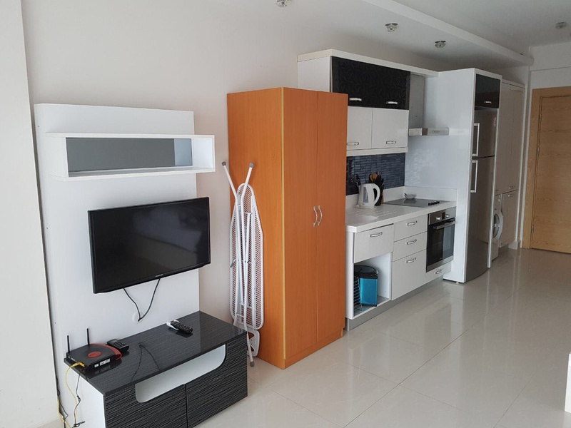 The apartment is on the 8th floor and has a panoramic view of the sea. The total area of the apartment is 45 m², it is fully furnished with quality furniture and built-in appliances (air conditioning, refrigerator in the kitchen, hob, oven, extractor hood, washing machine).