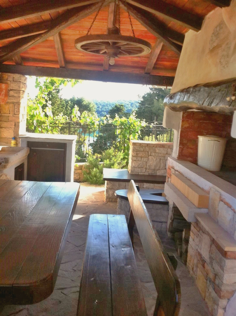 Luxury house, comfortable villa first-class design, built with premium materials. Villa is located on the island Rab and has a beautiful view of the sea. The floor area is 320 square meters and has 3 floors. In the basement are two separate apartments, one with his own kitchen. There is also a utility room and fully automatic furnace and water heater. The ground floor (has a terrace 35 m2 with pool) and the first floor are two 100square meters flats. The house is fully equiepped with luxury furniture. The villa has also has afully equiepped summer kitchen and fireplace and includes a land size of 716 square meters with a beautiful garden around the house.