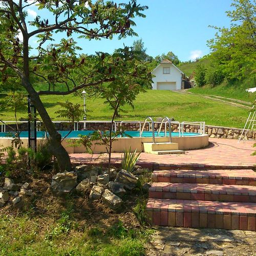 Beautiful location in a quiet valley of the Mecsek mountains. This pension has been in operation for a good 10 years. - the guest house is in fantastic location for 4 apartments. There is a property of altogether 8,3 hectares with a young forest, orchard and vineyard. It is in a central location in the southern Danube area: Pecs 40 kms, Szekszard 35 kms. This property is being sold in one of the most beautiful valleys of the eastern Mecsek mountains in Varalja, in a pleasant town (1000 inhabitants). The house is the last in the long street. It is on the edge of the forest in a protected area and is a very good location. Part of the object is a well fitted out, operating pension (530 m2) and has been for 10 years. It has 12 rooms, a conference hall, wine cellar, big garden with pool, and parking areas. The base: 5033 m2. On 1.4 hectares there is a separate building (1999) which is used as the guest's house (390m2) with 4 apartments. ( Today it is a house + office + roof which needs to be finished), garage (47 m2), with guest apartment under the roof. It has its own park with a small fishing lake, a big orchard with 180 fruit-trees, vineyard. 1 hectare of property is not cultivated and is used today as a park. 4,8 hectares of young forest exist and were new 4 years ago. The possession is suitable as an inn and can be extended. - One can form new buillding plots and buile (1 hectare) or - Do alterations to make it a senior citizen's home. The village and the property has a full infrastructure including electricity, gas connection, water and sewerage, telephone (ISDN, ADSL), cable TV.