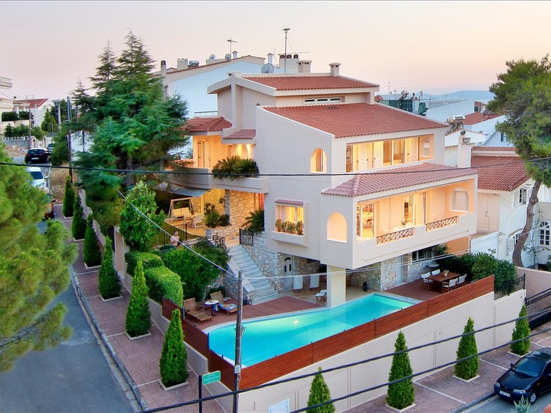 Продается 4-этажная вилла площадью 400 кв.м в Афинах. Первый уровень состоит из одной спальной комнаты, одного санузла. Второй уровень состоит из одной спальной комнаты, 2 гостиных, одной кухонной комнаты, одного санузла, одной кладовой. Третий уровень состоит из 3 спальных комнат, 2 ванных комнат. Четвертый уровень состоит из одной спальной комнаты, одной ванной комнаты. Вилла имеет угловое расположение. Имеет великолепный вид на море, на горы, на город, также есть бронированные входные двери, солнечные батареи для нагрева воды, камин, кондиционер, бассейн, парковочное место, сад, газон, барбекю, гараж, отопление, сигнализация, подсобное помещение.