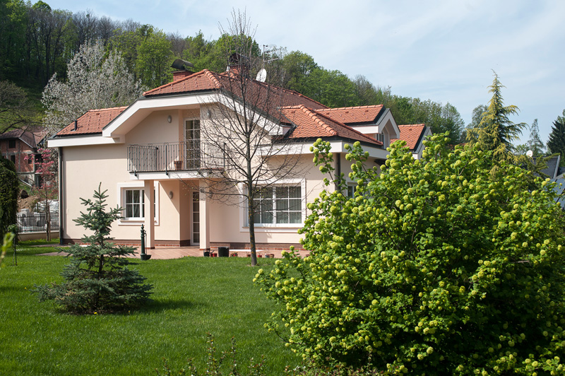 Продается в г. Самобор Вилла 2003 г. постройки за 600000 euro (себестоимость 1000000 euro) общей площадью - 450 m2, жилая - 384 m2, высота потолка - 6 m, кухня-гостиная - 83 m2, 3 спальни, в каждой из которых имеется ванная комната. Имеется бассейн длина - 15 m ,ширина - 3,5 m , финская сауна вместимость до 3 человек, джакузи. Также имеется винный погреб и гараж на 4 автомашины. Земельный участок -2000 m2.