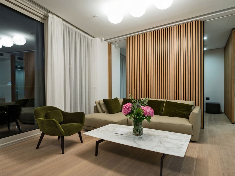 Апартамент оформлен в уникальном стиле и оснащен современными удобствами для спокойного комфортного отдыха. В распоряжении гостей полностью оборудованная кухня с обеденной зоной, гостиный уголок, оснащенный телевизором с плоским экраном, транслирующим кабельные каналы, а также просторная собственная ванная комната с халатами, тапочками и бесплатными туалетно-косметическими принадлежностями. Средиземноморские стиль спальни подарит Вам умиротворение и комфорт.
