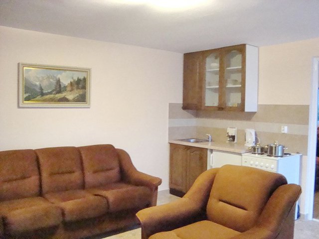 The ground floor is for guests. There is a spacious terrace with rose garden, 2 apartments (studio and studio + separate bedroom). Every apartment has a kitchen and a bathroom with a shower unit.