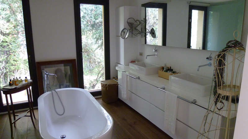 Многоуровневое строение в 370 кв.м. состоящее из трёх полуэтажей вмещает в себя просторную гостиную с экологическим камином и выходом в ухоженный средиземноморский сад с панорамным видом на море, столовую на 12 человек рядом с оборудованной и полностью экипированной кухней, супружескую спальню с гардеробом, выходом на террасу и ванной комнатой, две детские спальни с общей ванной комнатой, гостевую супружескую спальню с ванной комнатой и выходом в сад.