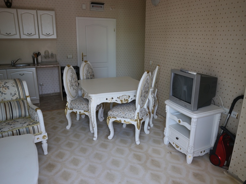 Предлагаем на продажу двухкомнатную квартиру в великолепном стиле в комплексе Таляна Бийч (Taliana Beach), который расположен на первой линии у пляжа около курорта "Елените". Она находится на 6-ом этаже, полностью меблирована и имеет террасу с видом на горы. Площадь – 66 кв.м.