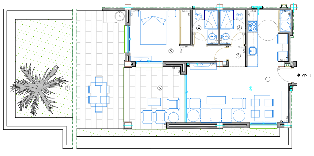 The project is being performed using only high-quality building and finishing materials, and in accordance with the latest techniques in construction. All apartments will be equipped with air-heat pumps for hot water, heated floors in bathrooms, aluminum windows, built-in wardrobes, fully furnished kitchens and bathrooms, etc.