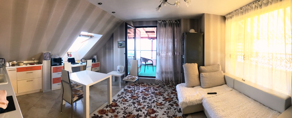 — Living room with kitchenette, bedroom, two bathrooms, a corridor, two terraces (one small and the other a large panoramic terrace with a barbecue, a dining table, there is plenty of room under the hot tub / pool!) You can enjoy your morning coffee here or a glass of cold white wine on hot days!);