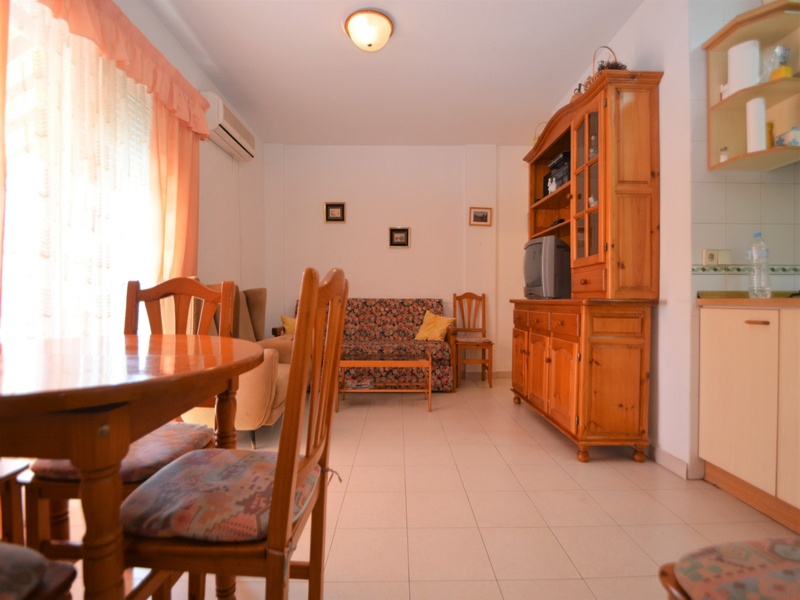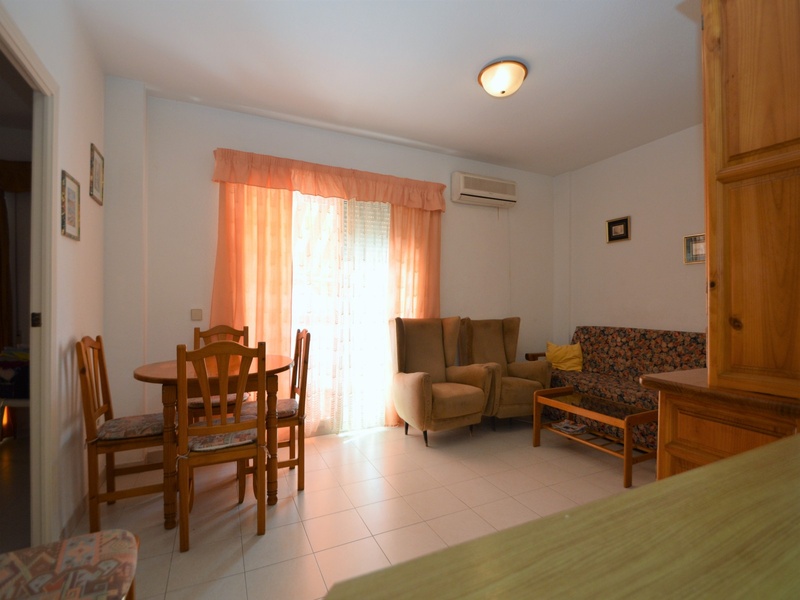Apartment in Torrevieja 200 meters from the sea. The housing has three bedrooms, one bathroom, a living room, an open kitchen and a terrace. The apartment is fully furnished and equipped, it disposes of built-in wardrobes in all bedrooms, air conditioning and security lock on the front door. The house is located on the second floor and makes a corner. All the windows of the apartment look out onto the street, which provides daylight throughout the day. The building is part of a closed residential complex with a swimming pool, green areas and a common solarium. Very convenient location in a quiet suburban area, with all services nearby. Supermarkets, restaurants, bars and cafes, many shops, pharmacies, offices and bus stops are within walking distance, public schools, a polyclinic and Torrevieja hospital are less than 5 minutes away by car. The exact adress is: Calle Mar Menor 21, 2ºL, 03185 Torrevieja