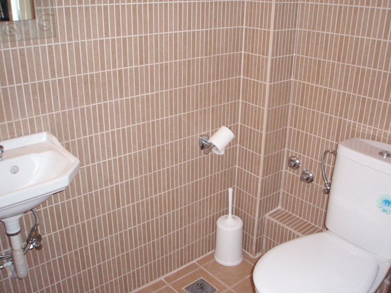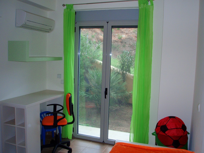 On the first (lower) floor with a total area of 38 m2 there are two bedrooms, a toilet and a bathroom. From each bedroom there are exits in a small private garden. Each bedroom is equipped with huge built-in wardrobes from floor to ceiling. Both bedrooms have air conditioning.