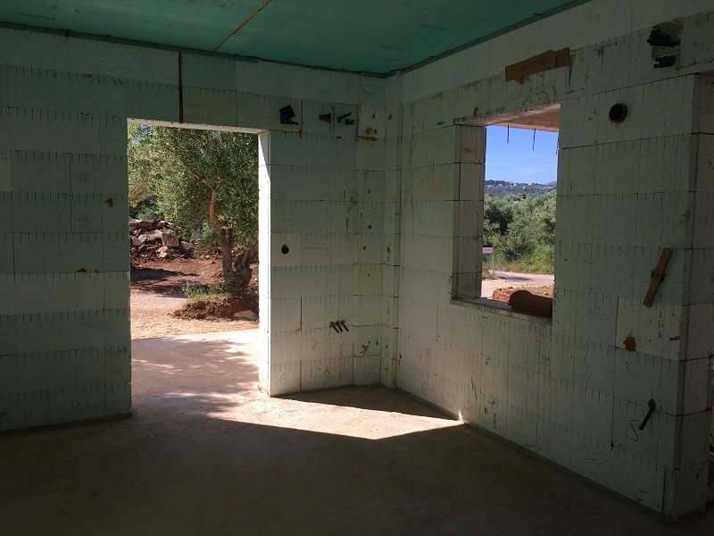 The house is under construction, and the estimated completion date is calculated in 4-5 months. The total area of the plot is 4.300 sq.m. And has its own olive grove. The total area of the house is 140sq.m, and gives another possibility to build 55 sq.m. The house is divided into two floors. On the first floor, there is: common living room with kitchen, living room bedroom, and access to the garden. On the second floor, there are 3 bedrooms, each with its own bathroom with shower, and exit to the balcony, from where the chic view of the white mountains opens. There is water and electricity near the plot. Distance to the beach of Almirida is 2km. The city of Chania 30km.