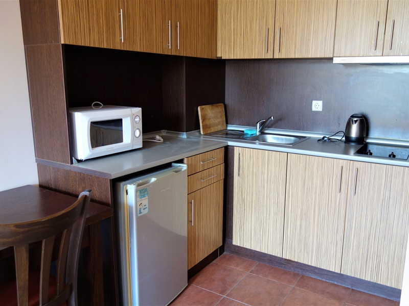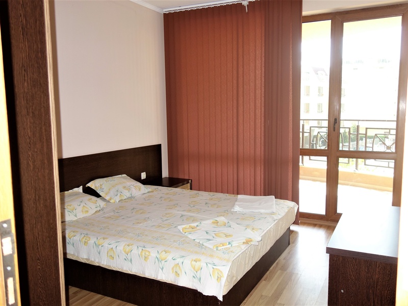 Двухкомнатная квартира, площадью – 60 кв.м, на 2-ом этаже в курортном комплексе, расположенном на Солнечном Берегу. Жилье состоит из зала с кухней, спальни, санузла и балкона. С видом на бассейн. В отличном состоянии.