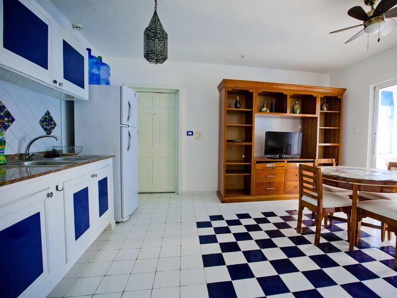 Residence El Dorado. 250 m from the ocean. The apartments on the first floor have 1 bedroom with a double bed, a bathroom, a living room and a kitchen with access to a large balcony overlooking the pool. Ideal for accommodation of both couples and adults with a child (the residence has a separate pool for children). The apartments were renovated in April 2017. Technique: TV, washing machine, microwave, refrigerator, air conditioning, WiFi. There is an apartment in the tourist center of Bavaro, all the amenities are close by. In walking distance are shops, restaurants, bars, cafes, beauty salons. Security around the clock, the pool outside the window. Calm neighbors. A corner of paradise.