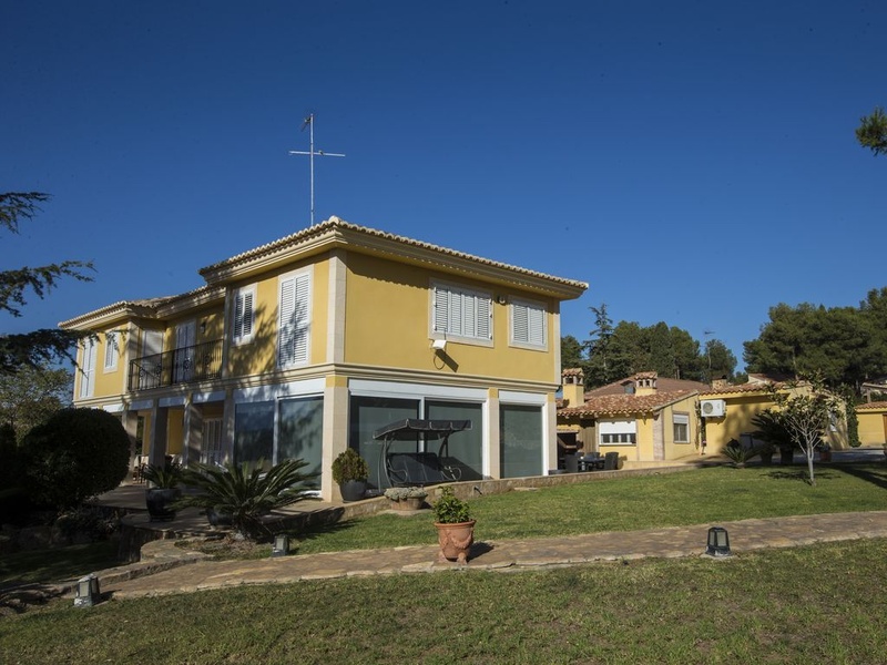 Большая веранда и летняя застекленная гостиная с раздвижными дверями и жалюзи. Снаружи основного здания: летняя столовая, полностью укомплектованная туалетная комната, кладовая комната со стеллажами, большая полностью укомплектованная летняя кухня и зона барбекю и паэльеро. Тренажерный зал с сауной и душем. Домик для садовых инструментов. Крытая парковка, рассчитанная на 4 машины и возможность припарковать еще 10 машин на площадке рядом с домом. Искусственный пруд для содержания декоративных рыб, самоочищающийся бассейн размером 8х4 м. Сад с поливом дождеванием по запрограммированному режиму. Доступ с улицы через 2 основные двери и 1 небольшую вспомогательную дверь, выходящие на 3 улицы, окружающие виллу. Размер участка: 3.000 м2, общая площадь жилого строения: 600 м2. Дом полностью оборудован всеми необходимыми коммуникациями, газ и электроснабжение, во всех помещениях установлены кондиционеры. Участок квалифицирован как городская земля, имеются все разрешения и лицензии. Вилла расположена в 15 минутах езды от аэропорта Валенсии (Манисес), в 30 минутах езды от Валенсии, в районе удобно связанном автотрассами с крупными городами Испании. Полностью готова к заселению.