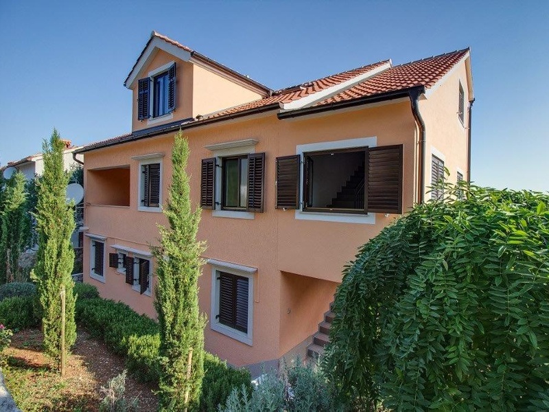 The apartment is located in the center of Mali Lošinj and completely occupies the last floor of an urban villa. It consists of 2 bedrooms, living room with dining room, kitchen, bathroom and 2 terraces. The apartment was completely renovated in 2013 with top quality natural materials and complete noise insulation. Also, in 2017 it has an extended terrace throughout the apartment and has an open panoramic view of the sea and the islands. The apartment is air-conditioned and in each room are wooden oak parquet floors, while the bathrooms and kitchens have high quality tiles. The apartment has one parking space and a landscaped garden of 69 m2. The sea takes only 3 minutes of light walks.