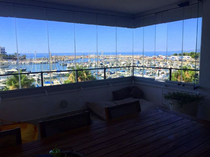 Completely renovated apartment with panoramic view and south facing in front line to the port of Portixol.