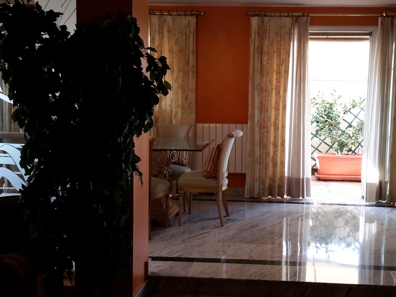 Квартира в хорошем состоянии, светлая и просторная (140 кв.м.), ориентация на юго-запад, позволяющая иметь солнце на террасе (130 кв.м.) в течение всего дня.