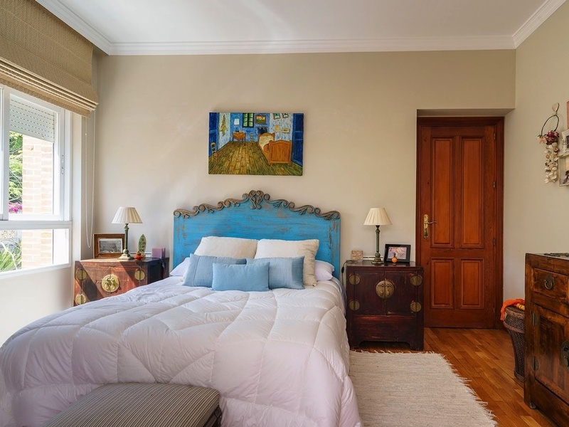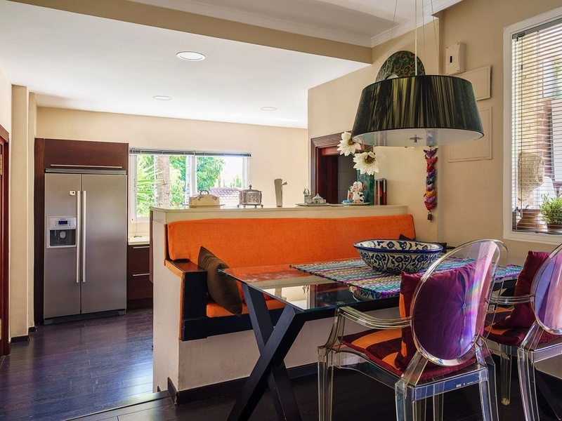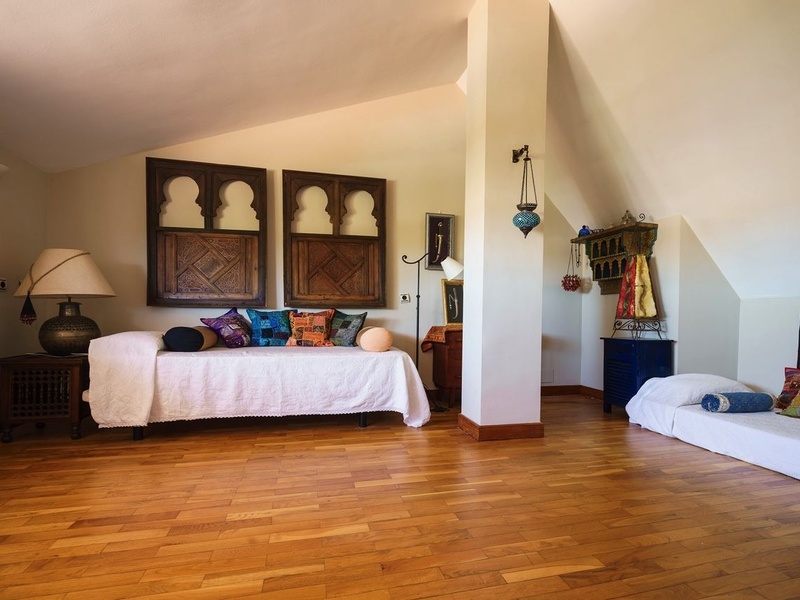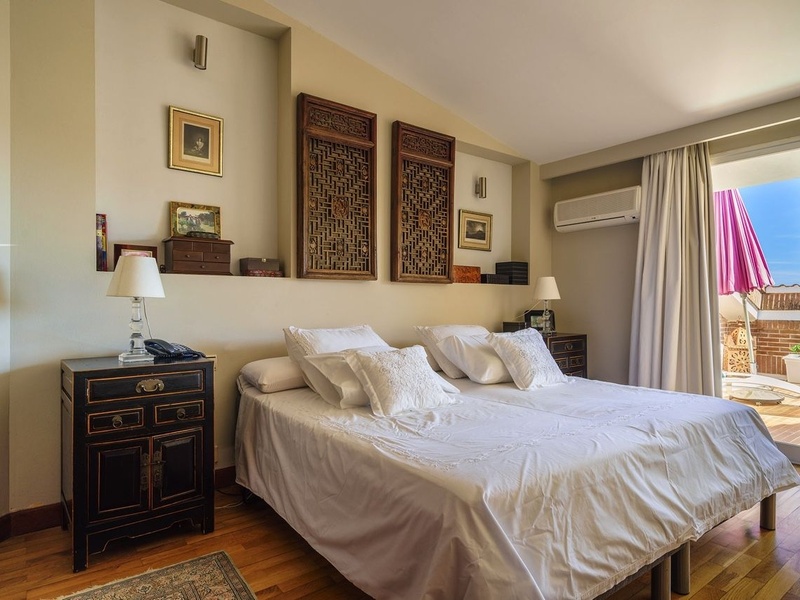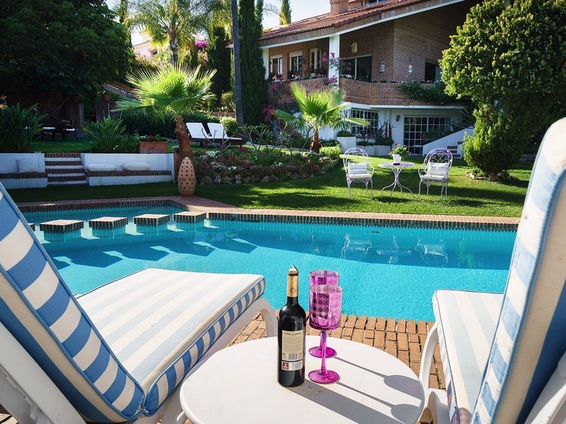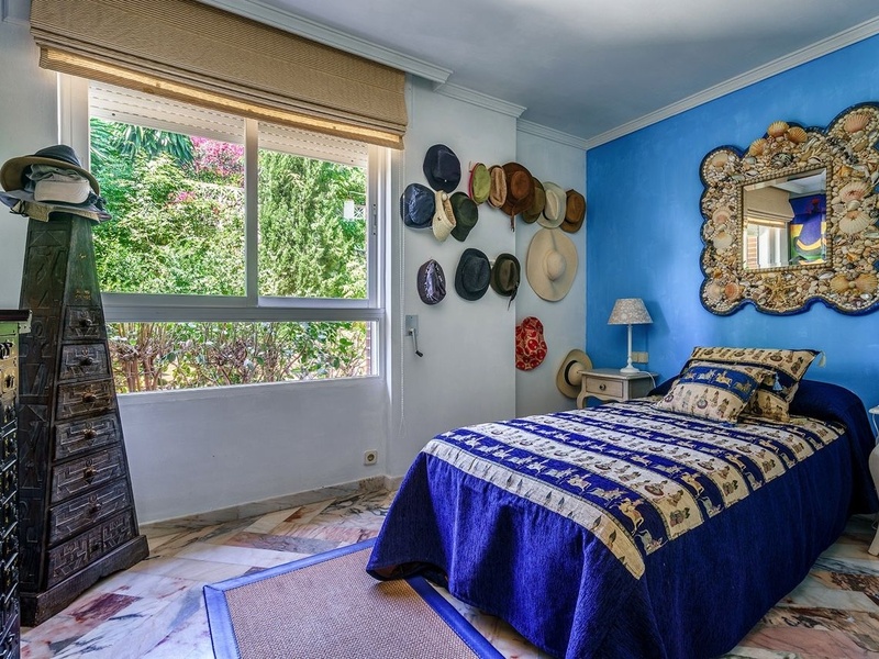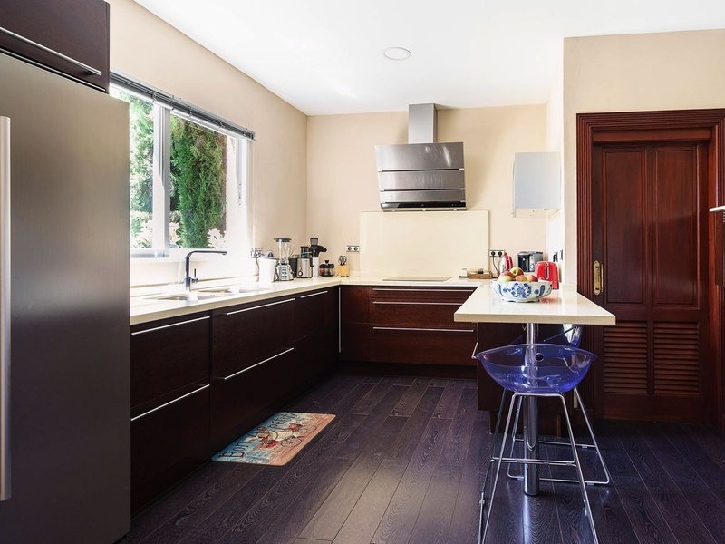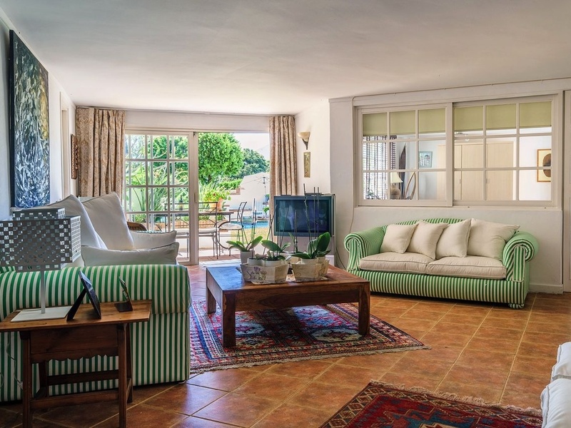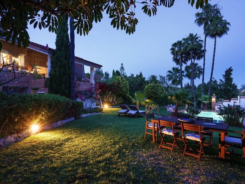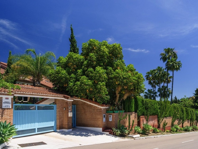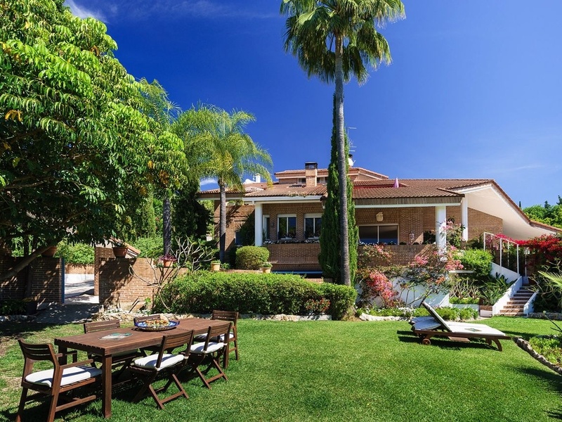 For sale an exclusive villa in Benahavis, a town and municipality in Spain, is part of the province of Malaga, in the autonomous community of Andalusia. The municipality is part of the Costa del Sol-Occidental region. The villa is located next to the golf course, the international school of Atalaya and the supermarket Mercadona. Just 10 minutes from the beach and a variety of restaurants. The area is guarded for 24 hours. The villa has an original architecture typical of the houses of northern Spain. This is a very cozy and spacious house, built on 4 levels: on the ground floor: an entrance hall, guest toilet, equipped kitchen with a breakfast area, laundry. One bedroom for the staff with bathroom. Three large halls on different levels, one with a beautiful marble fireplace, and the other with a large wooden bookcase. Terrace with access through the stairs to the garden. The terrace offers a beautiful view of the garden and pool. On the second floor there is a master bedroom with an office room, a bathroom, a dressing room and a terrace. There are 3 more bedrooms and 1 bathroom. One of these bedrooms also has a terrace. On the third floor there is a room with a bathroom. On the ground floor there is a large pantry, a closed garage for two cars and a guest apartment with a hall, kitchen, bathroom, bedroom and a terrace with access to the garden. The garden is charming, a lot of vegetation with lots of trees, where many fruit trees are planted. The pool is very nice with a zone for sun loungers. The house was built with very good finishing qualities. This charming family house to enjoy a quiet life, with spacious rooms and a very well-groomed exterior area. The house is decorated with taste. Furniture is not included in the price, but it is possible to buy it for a fee. Around: Golf Club El Paraiso and Costalita Beach. Total area: 600 m². Usable area: 556 m². Plot area: 1417 m². Bedrooms: 7, Baths: 5. Year of construction: 1985.