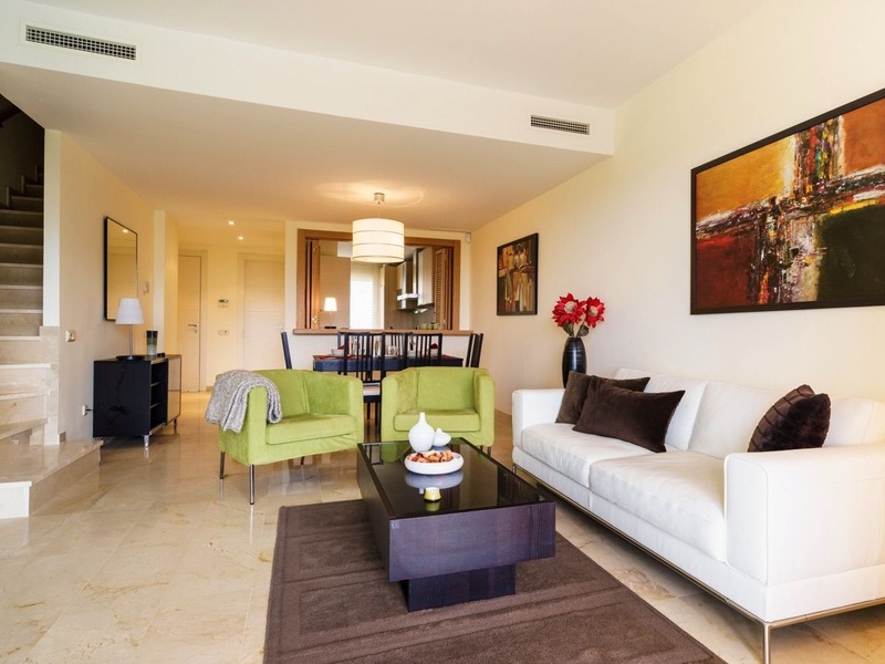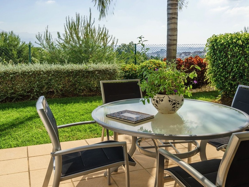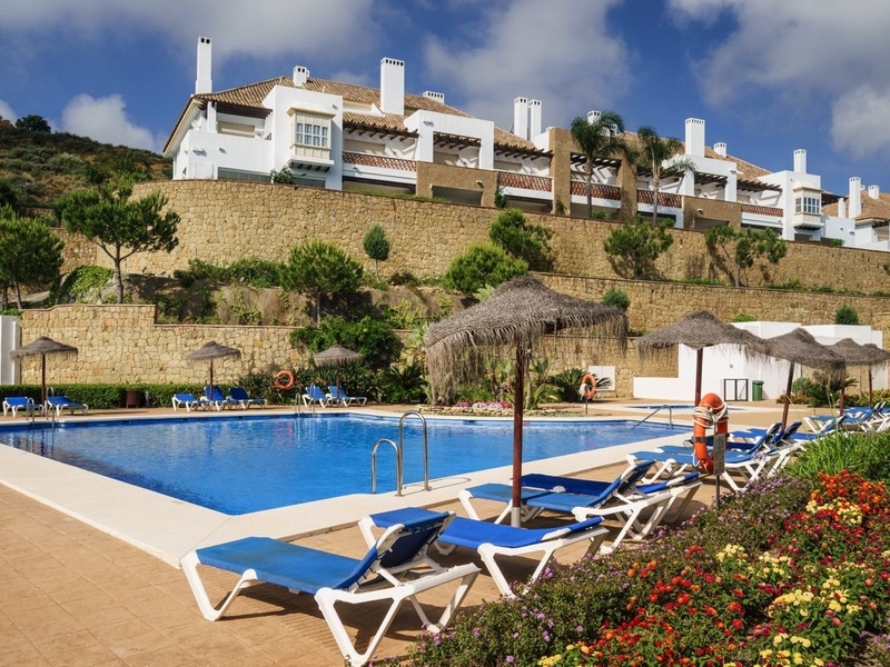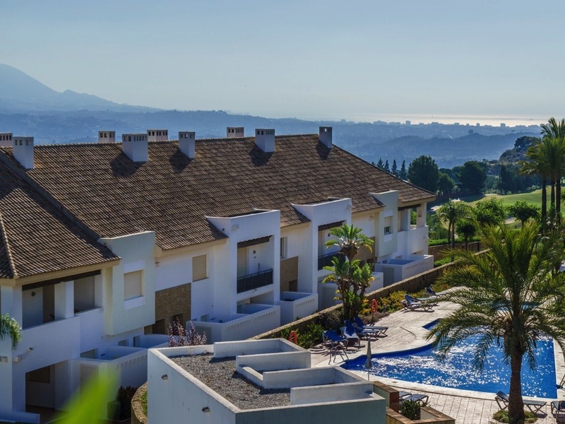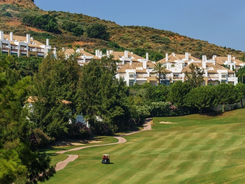 House for sale in a row of residential complex in La Cala de Mijas, in the province of Malaga, Spain. The municipality is part of the Costa del Sol-Occidental region. For sale A townhouse with two bedrooms, two bathrooms and a toilet, a fully equipped kitchen with utility patio, lounge / dining room with fireplace, covered terrace and private garden with beautiful views of the golf course and mountains, private underground garage and storage room. The house is located in a sunny and quiet place, looks to the south. Good quality finishes: air conditioning cold-hot, electric shutters, whirlpool and heated floors in the bathroom, in the master bedroom, installed alarm. The house is located in the residential complex "Monte Alto" - 102 townhouses in the exclusive area of La Cala Golf in Mijas. The complex has beautiful gardens and three swimming pools. The complex was designed by a team of experienced architects who developed residential complexes in the United States. Ideal home for golf and nature lovers. Total area: 189 m². Useful area: 172 m². Plot area: 109 m². Bedrooms: 2. Bathrooms: 3. Year of construction: 2007.
