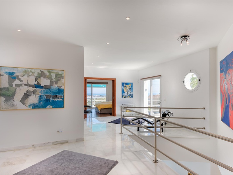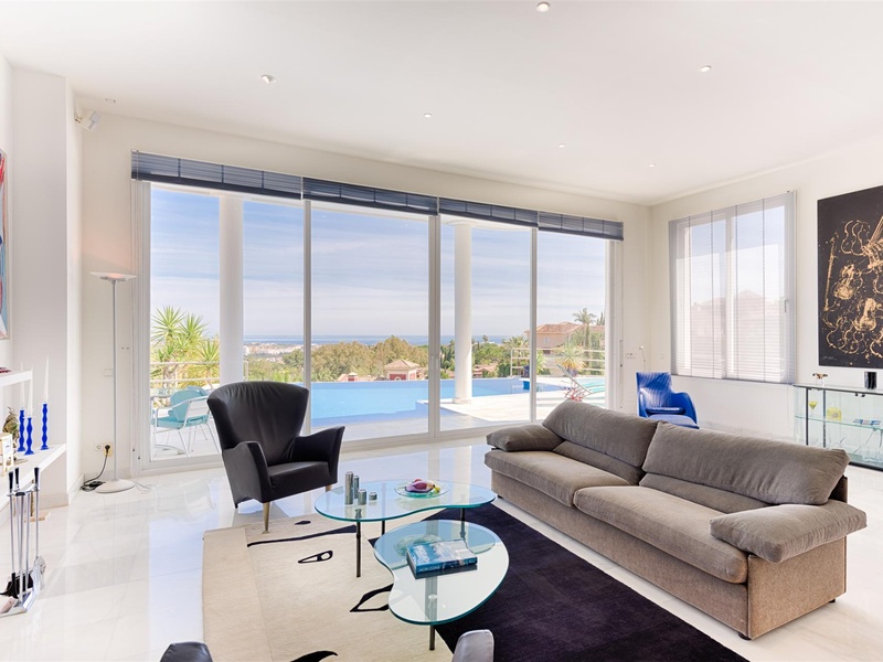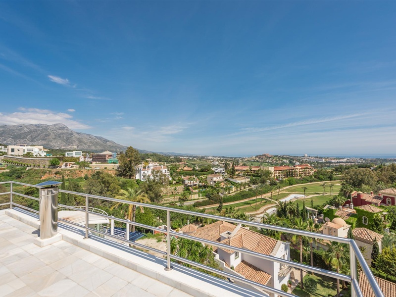 For sale a unique villa in Nueva Andalucia, this is the district of the municipality of Marbella, in the province of Malaga, Spain. It is located in the center to the west of the municipality, between the center of Marbella and the village of San Pedro Alcantara. The area includes the area of villas and apartments designed in the traditional Andalusian style, scattered among the large golf courses. It includes Puerto Banus and El Angel, as well as the Golden Mile, by concentrating some of the most luxurious areas of the city. A unique villa in a modern style with a panoramic view of the valley and the sea. Located in a closed community with access to the top of the hill. The villa has a large entrance hall through which opens a spacious living room on a separate level with a high ceiling. On the right side of the villa there is a separate dining room with access to a high standard kitchen, as well as a room with a TV. On the second floor there is a master bedroom suite and another bedroom. On the third floor there is an office that can be used as another bedroom. Huge roof terrace with panoramic views. In the basement there is a home theater, a gym, a sauna, a billiard room, a laundry, a warehouse, a wine cellar and a garage for 2 cars. At this level there is another bedroom and bathroom. Heated floors, white, marble. Large terrace with lawn, fully equipped barbecue area and summer dining room with gazebo. This area, located along Nueva Andalucia, became a continuation of the Golf Valley. It is famous for its golf course and country club. There are facilities such as a restaurant, sauna, health club, gymnasium, squash and golf school. The total area of the villa is 531 sq.m., the area of the plot is 1,198 sq.m. In total there are 4 bedrooms, 4 bathrooms.