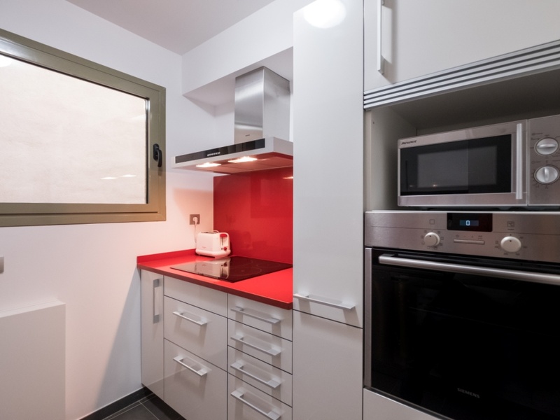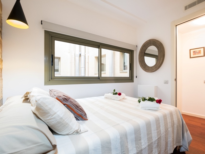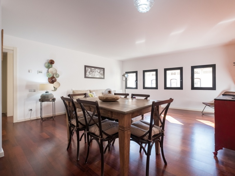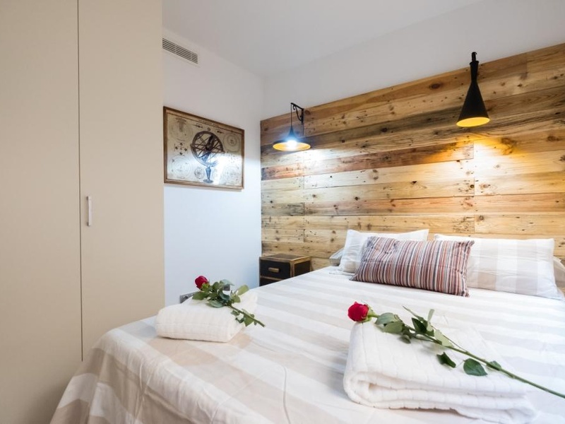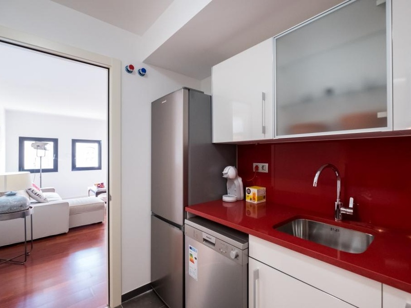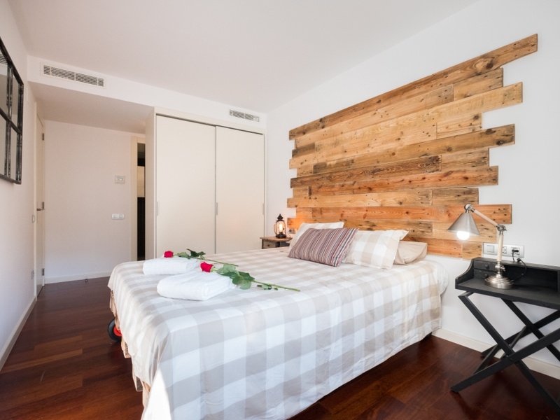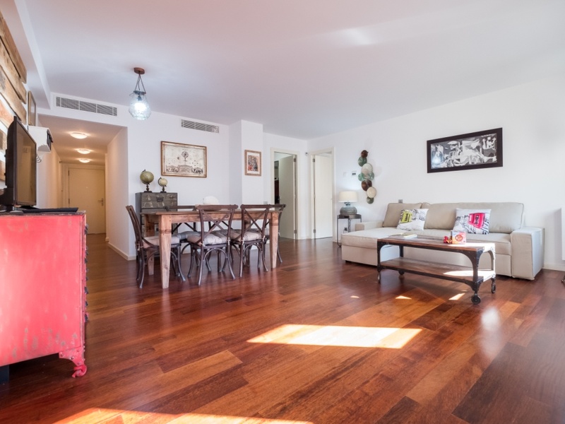 This luxurious and spacious apartment of 100 m2 is ideal for families and couples. POSSIBLE RENTAL ON OTHER CONDITIONS The apartment has 2 large bedrooms with double beds and a spacious living room with a dining area. The whole apartment is fully equipped, including air conditioning, heating, TV, washing machine, Wi-Fi. In addition, the building has a concierge and a terrace with a swimming pool and a gym on the roof. Here you can enjoy a panoramic view of Barcelona and the Spanish sun.