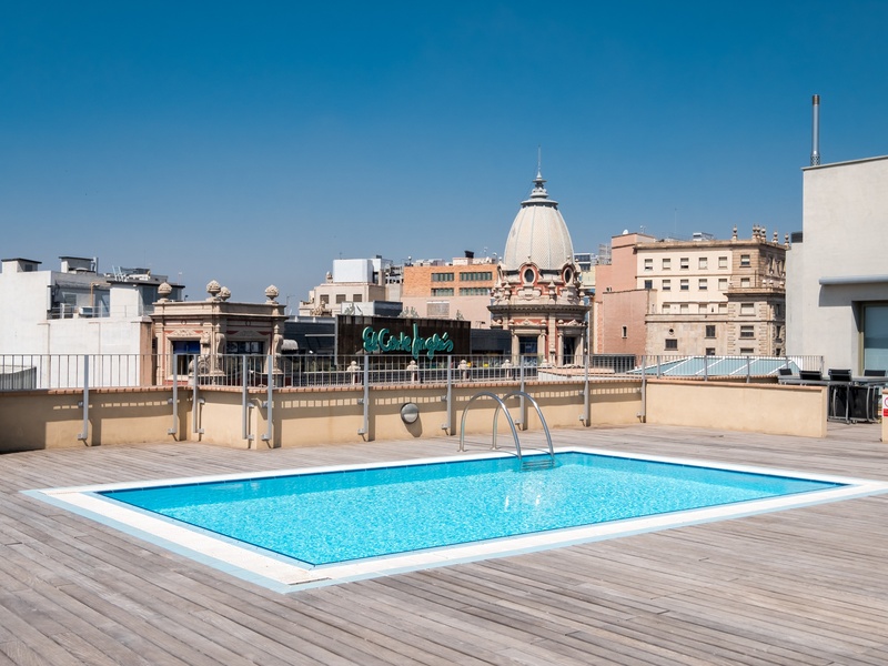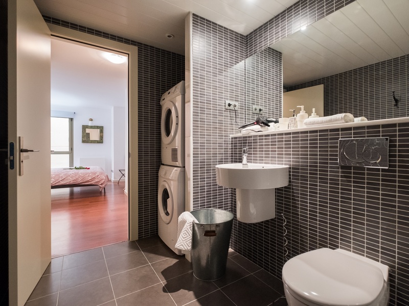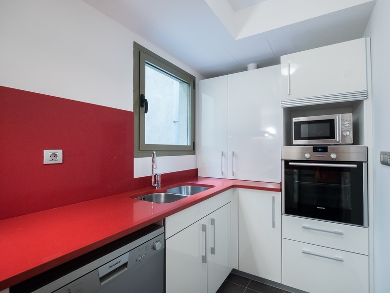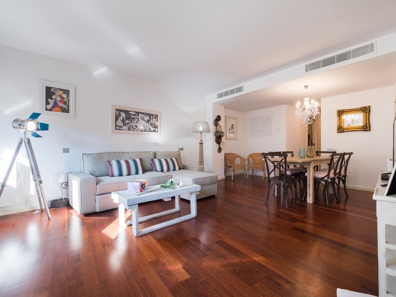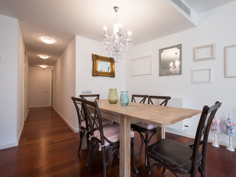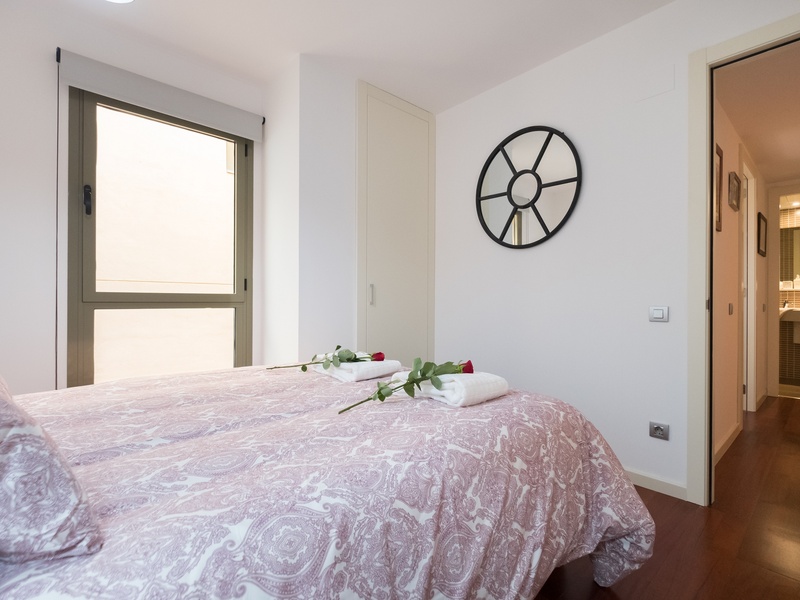 This luxurious and spacious apartment of 100 m2 is ideal for families. POSSIBLE RENTAL ON OTHER CONDITIONS The apartment has 3 large bedrooms with double beds and a spacious living room with a dining area. The whole apartment is fully equipped, including air conditioning, heating, TV, washing machine, Wi-Fi Internet. In addition, the building has a concierge and a terrace with a swimming pool and a gym on the roof where you can enjoy a panoramic view of Barcelona.