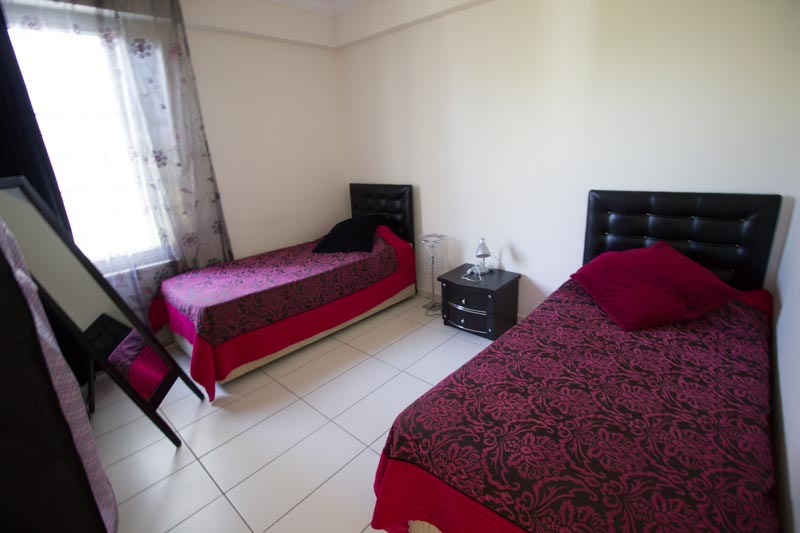 A bright and spacious interior, the residence offers an open plan living area with lounge, kitchen, and dining area. The kitchen is fully stocked with lots of cupboards, working space, and white goods. The living room is relaxing and comfortable. There is also a front terrace that is ideal for relaxing. The apartment has two spacious bedrooms.