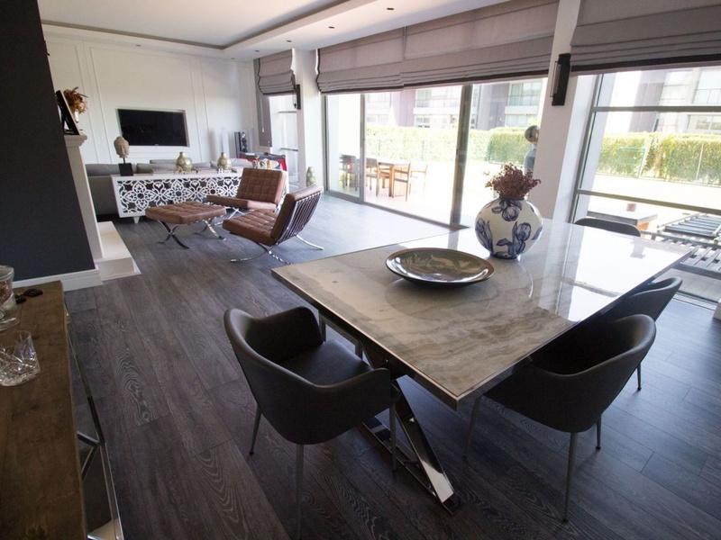 An exclusive villa in the heart of Antalya is located in Kundu just 10 kilometers away fron the airport and 1 kilometer away from the beach. The complex was built in 2015 and has underground parking, swimming pool and 24 hour security. The house is 550 sq m and has 4 floors, a garage and a big garden. there is a kitchen and a living room on the groung floor. There are 6 bedrooms with wardrobes ad en-suite bathrooms and a sauna.