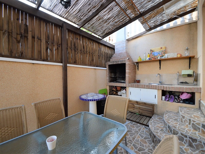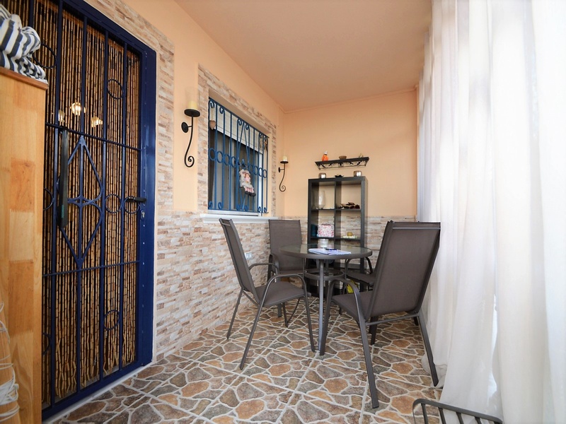 Semi-detached corner house for sale in Torrevieja, in the urbanization of Senuela, on the edge of Orihuela Costa. The house has 70 square meters of a living area distributed between the living room with an open kitchen, a laundry room, two bedrooms and one bathroom – all on one floor. Neoclassical interior design, comfort and cosiness in every detail. Impeccable condition, constructed in 2007, totally repaired in 2016. Fully furnished and equipped with household appliances. The house also has a storage room on the house plot and the possibility of opening a large basement room. Quality construction and finishing materials: laminate flooring in both bedrooms and a living room, air conditioning,, central heating, protective grilles, an armoured door, a shower cabin, single-lever valves, etc. The house has a large solarium with an area of 65 square meters overlooking the sea and a plot of 180 square meters, with an entrance for one car, a barbecue with a dining area and several seating areas. Urbanization has a common swimming pool. Location in a quiet residential area, close to all amenities and services. Schools, supermarkets, bus stops, several shopping centres with shops, pharmacies, banks, restaurants, cafes, etc. are within a walking distance from the house. The magnificent beach of Punta Prima and the best beaches of Torrevieja and Orihuela Costa are in a 5-minute driving distance.