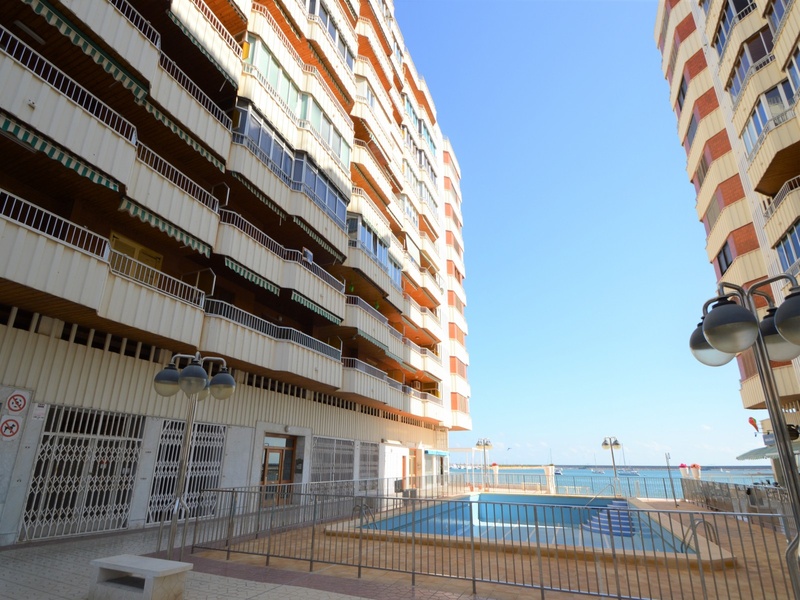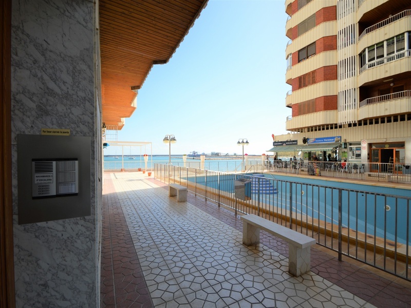 Квартира на продажу в Торревьехе, на первой линии от моря. Просторные светлые апартаменты с отдельной кухней, прачечной, двумя санузлами, тремя спальнями, большой гостиной и просторной террасой с боковым видом на море и прекрасным видом на город и озеро Лас-Салинас-де-Торревьеха. Квартира меблирована и оборудована всей необходимой бытовой техникой. Находится в очень хорошем состоянии, имеет кондиционеры в гостиной и в спальнях. Располагается на девятом — последнем этаже здания. Дом имеет два лифты и общий солярий, а также общий бассейн на краю пляжа с видом на море. Удобное месторасположение в менее чем в 500 метрах от спортивного порта La Marina International, в минуте от множества супермаркетов, магазинов, ресторанов и кафе. В 5-ти минутах ходьбы от волщебной набережной Vista Alegre и чудесного центра этого города. В районе также имеется государственная школа, поликлиника, несколько парков с детскими площадками и всевозможные удобства и услуги.